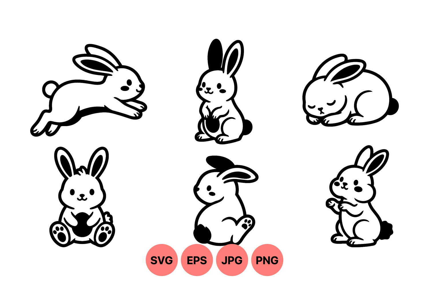 Hand Drawn Cute Bunny Svg Character Illustrations