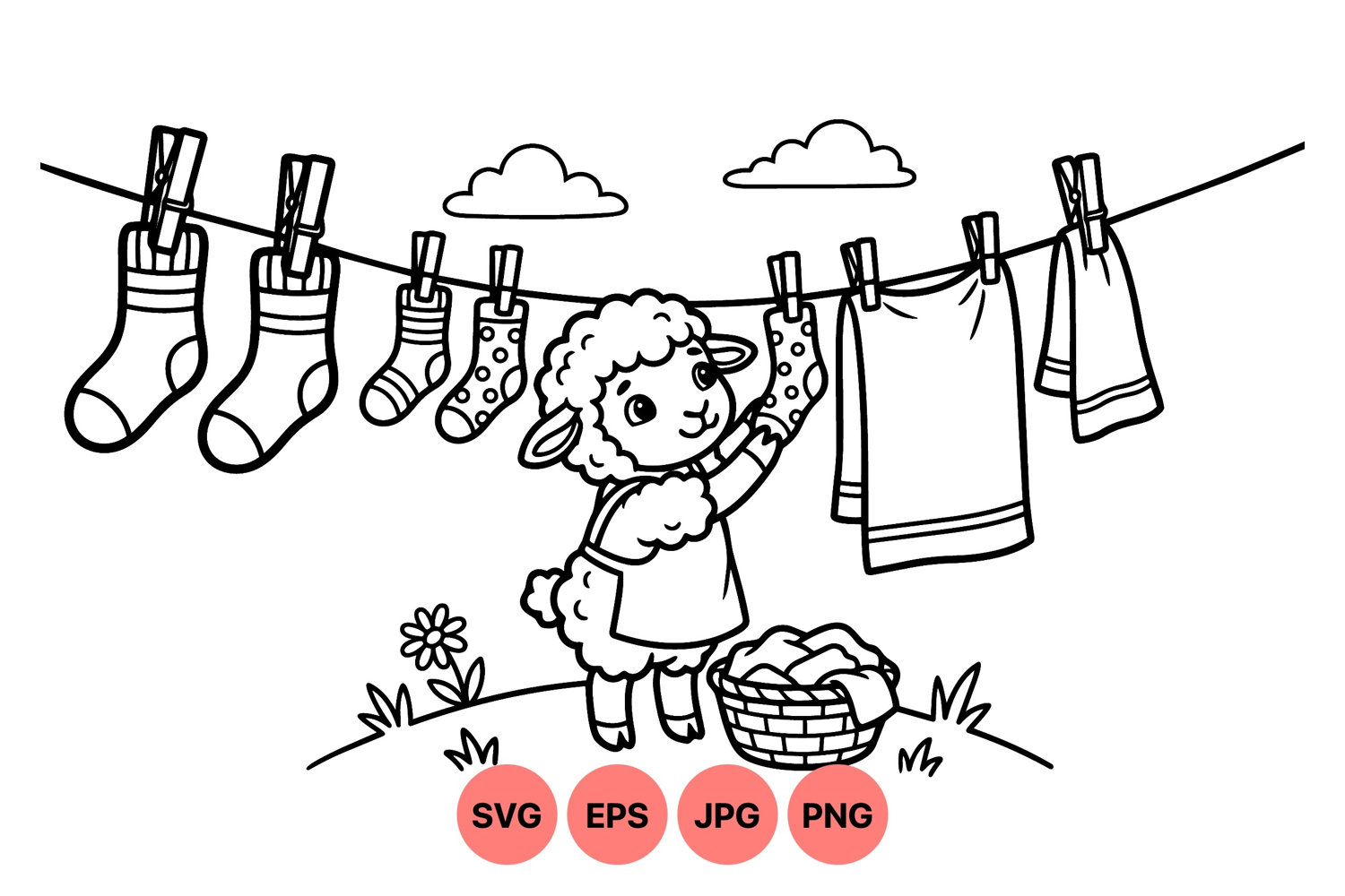 Hand Drawn Lamb Hanging Laundry Clipart Illustration example image 1