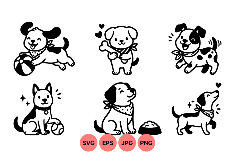 Cute Puppy Clipart Hand Drawn Dogs Adorable Pet Graphics Dog Bone Artwork Fun Animal Clipart Playful Pet Illustrations Dog Cartoon Drawings Puppy Vector Images Puppy Playing Ball Black And White Puppies
