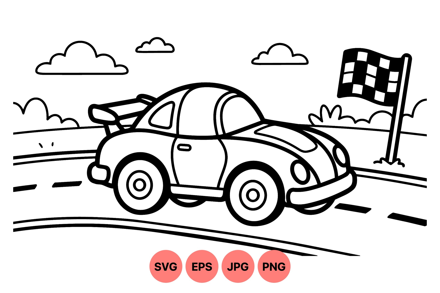Racing Car Clipart Checkered Flag Design Kids Coloring Svg Outline Car Clipart Speed Car Graphic Race Track Illustration Cartoon Car Artwork Vehicle Digital Cut Road Race Drawing Children Car Svg