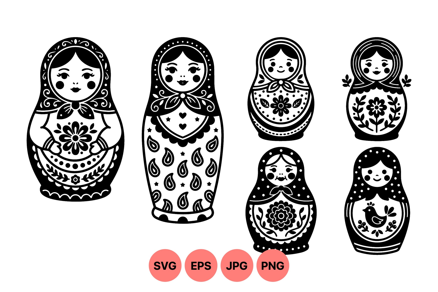 Black White Clipart Folk Art Illustration Russian Doll Vector Matryoshka Doll Design Hand Drawn Dolls Vector Folk Motif Traditional Russian Art Decorative Doll Graphic Ornamental Doll Illustration Nested Doll Artwork