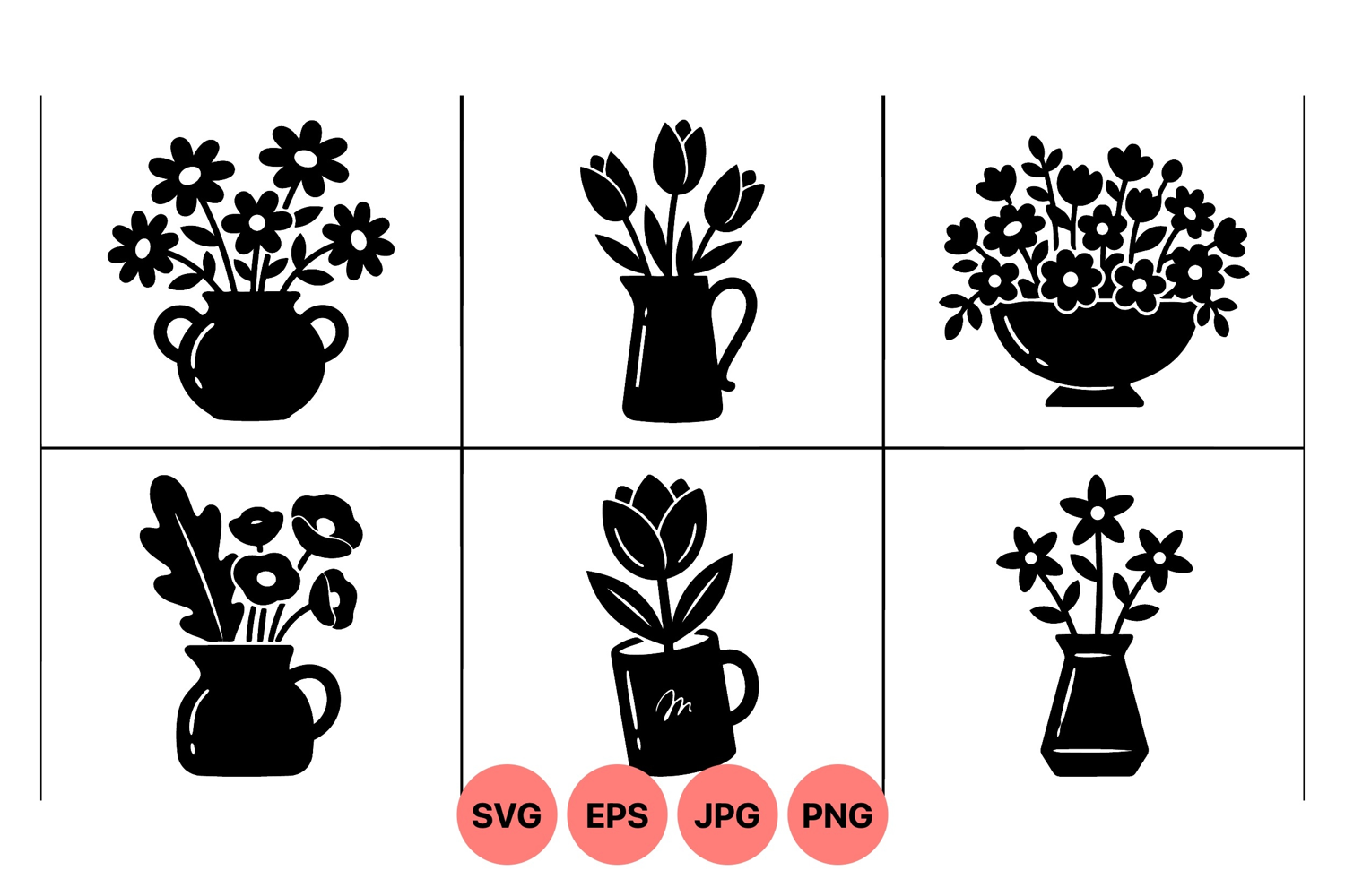 Similar Design Products to Black Floral Vase Silhouette Clipart for Decor