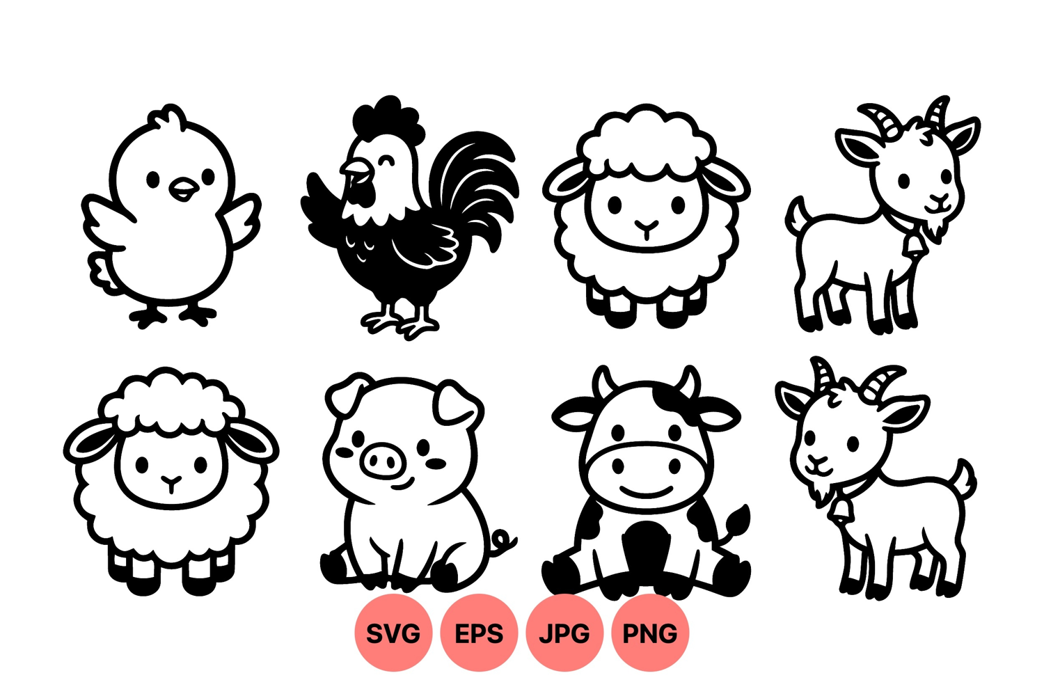 Animal Svg Files Cute Farm Animals Farm Animal Illustration Black White Clipart Barnyard Animal Art Children Craft Graphics Animal Cartoon Graphics Vector Animal Design Farm Vector Images