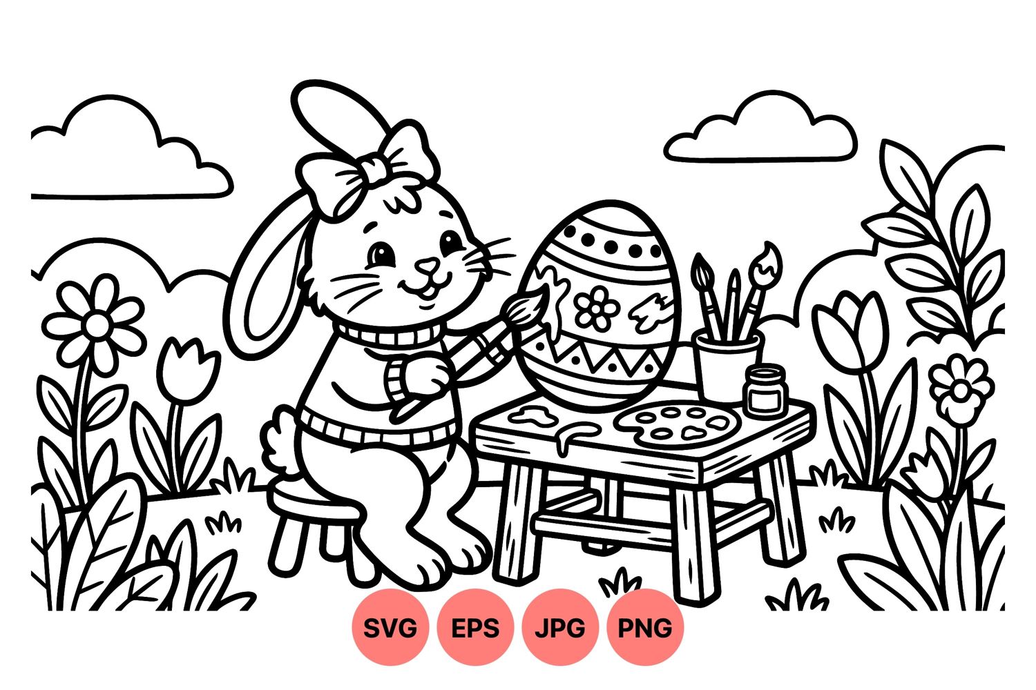 Hand Drawn Easter Bunny Painting Egg Svg Design example image 1
