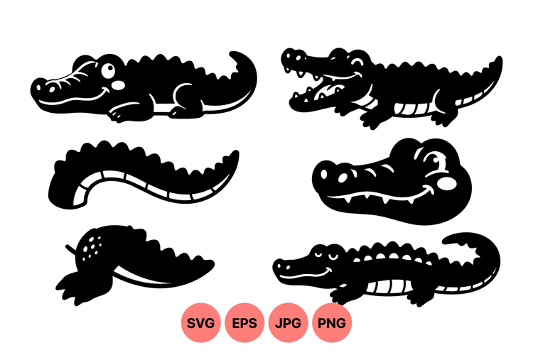 Cute Cartoon Alligator Silhouette Clipart example image 1