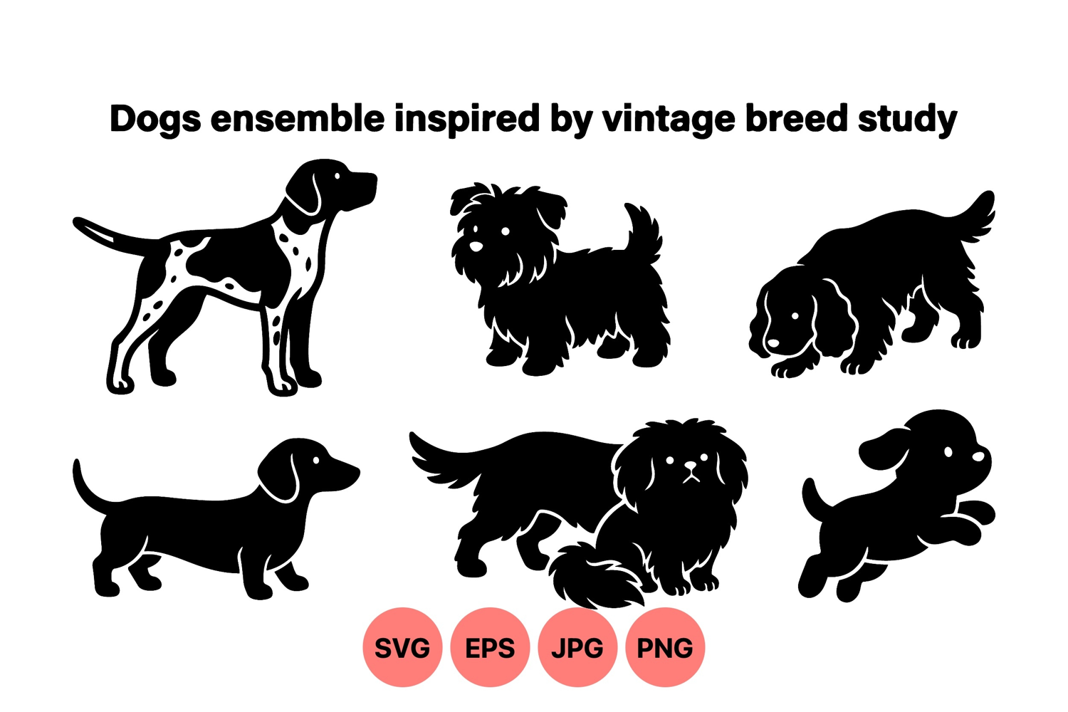 Similar Design Products to Vintage Dog Breed Silhouettes Vector Graphics