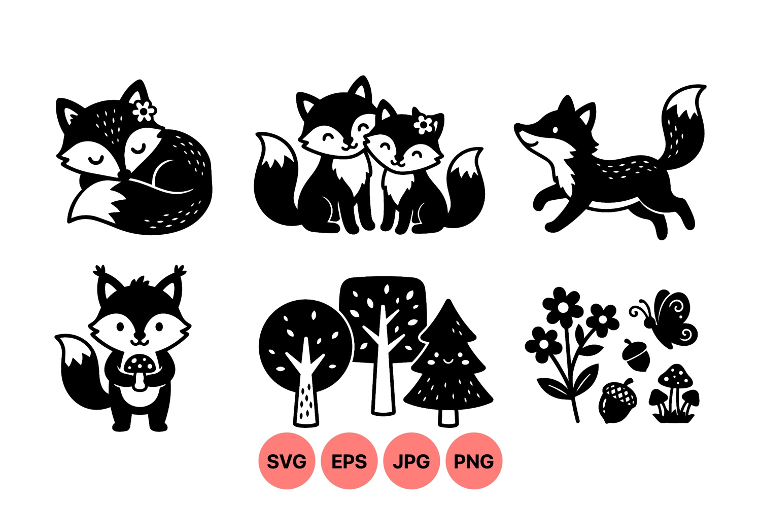 Hand Drawn Animals Forest Animal Graphics Cute Fox Illustrations Woodland Fox Clipart Nature Themed Art Seasonal Fall Graphics Woodland Creature Art Children Party Design Printable Animal Decor Woodland Forest Flowers