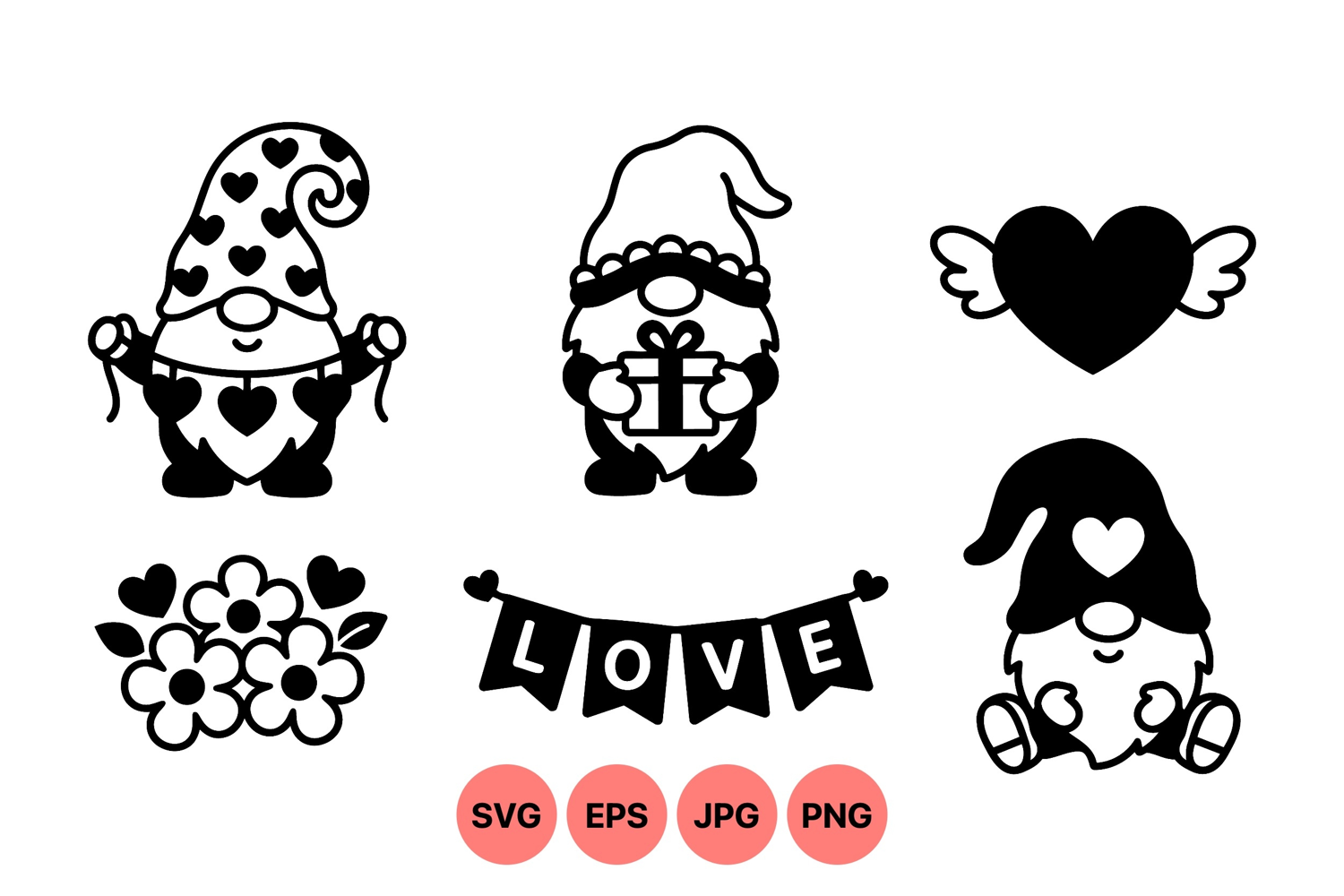 Cute Valentine Gnome Clipart Illustrations for Crafts
