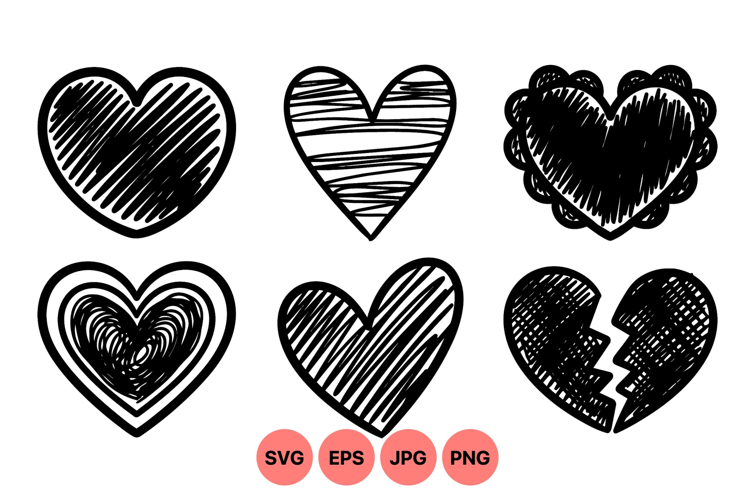 Similar Design Products to Hand Drawn Heart Clipart Illustrations For Valentines