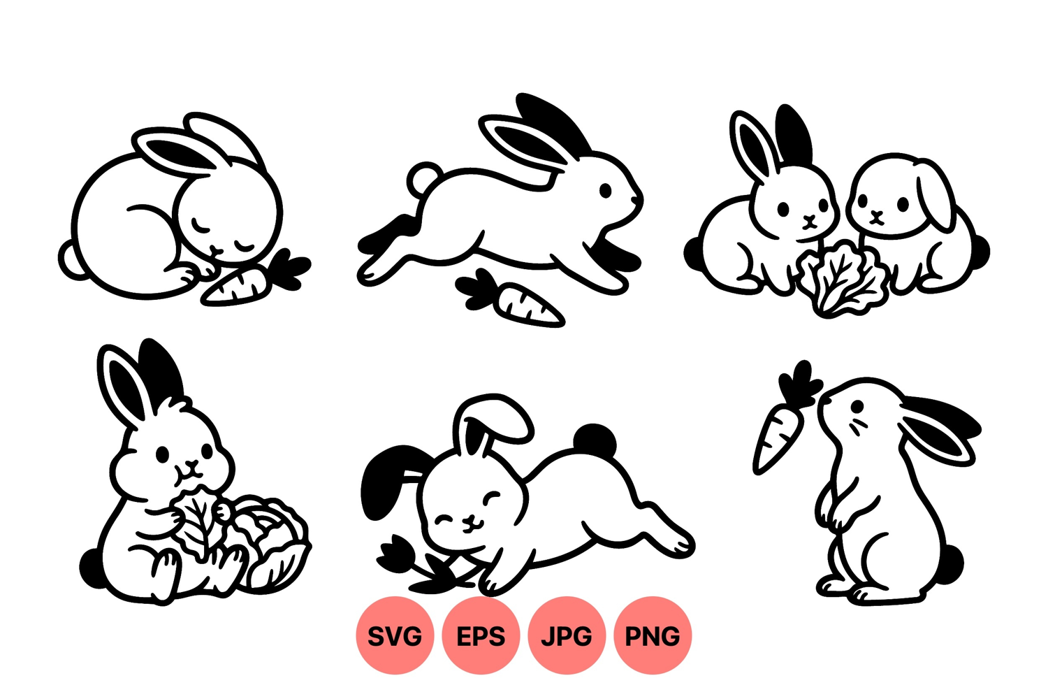 Cute Bunny Clipart Simple Line Drawings Animal Vector Illustration Veggie Garden Clipart Easter Craft Graphics Black Silhouette Rabbit Spring Holiday Designs Children Friendly Artwork Playful Bunny Images Digital Pet Illustrations
