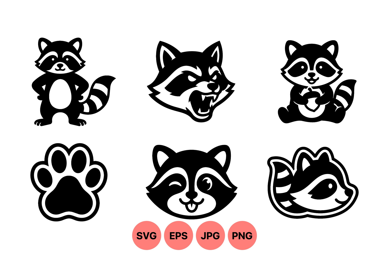 Cute Raccoon Vector Icons for Crafts and Design
