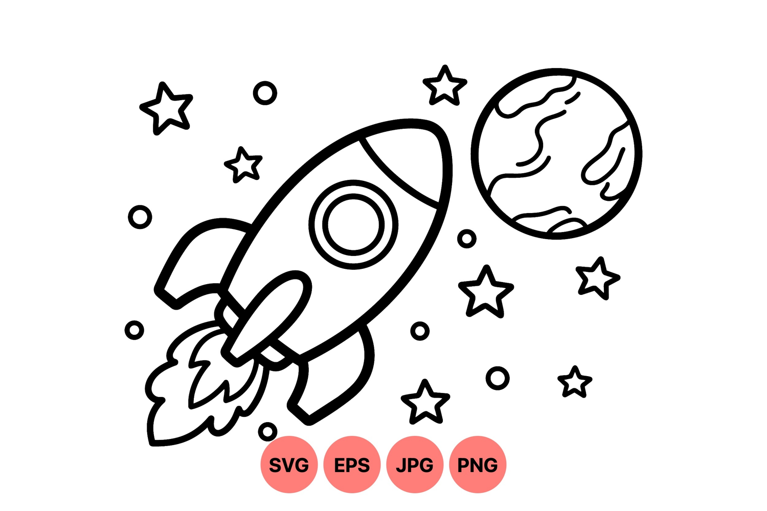 Planet Clip Art Outer Space Vector Hand Drawn Stars Rocket Ship Illustration Black And White Rocket Space Exploration Art Space Themed Graphics Line Art Space Design Children Space Clipart Rocket Launch Drawing
