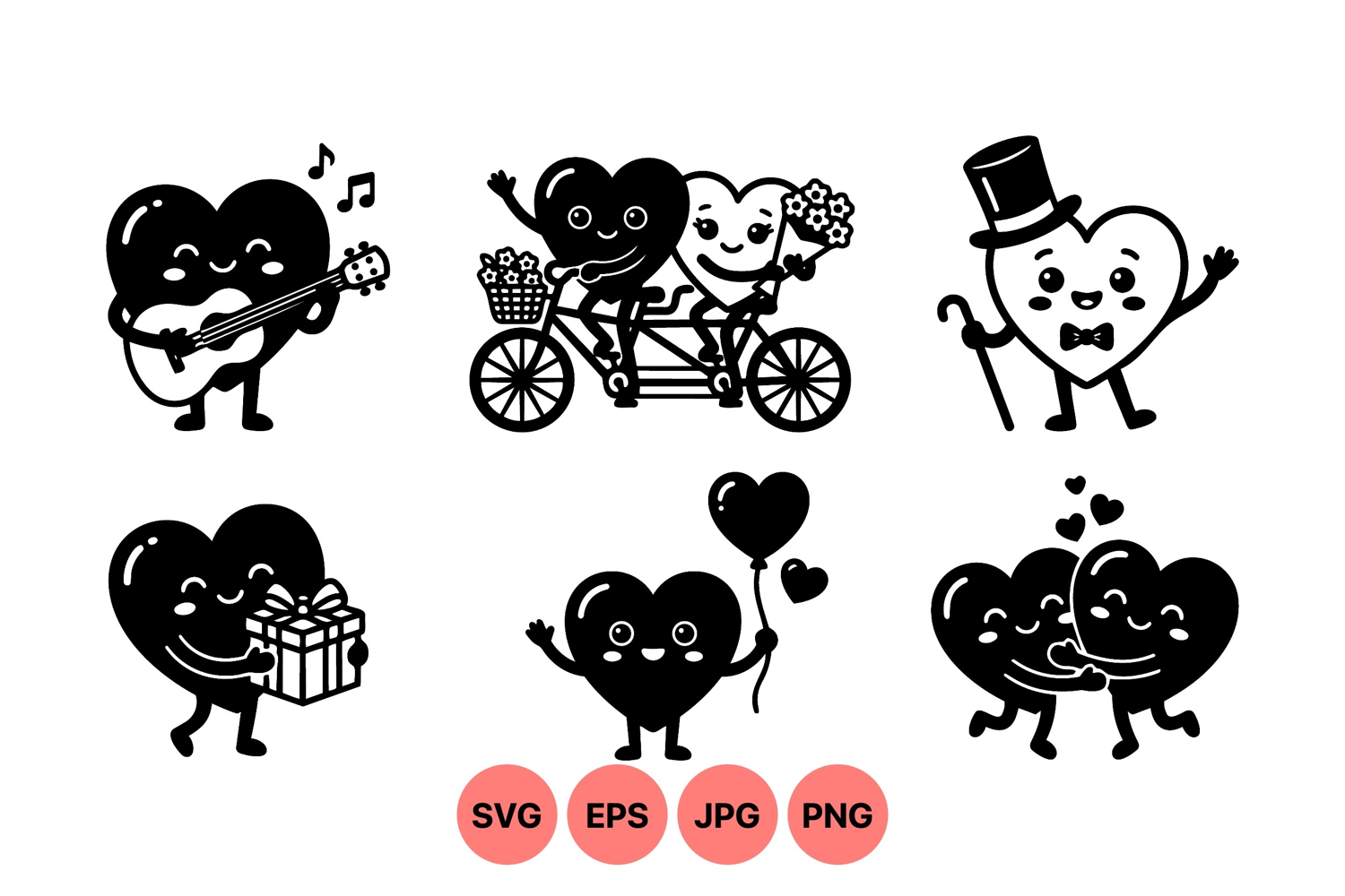 Cute Heart Character Vector Clipart For Valentines example image 1