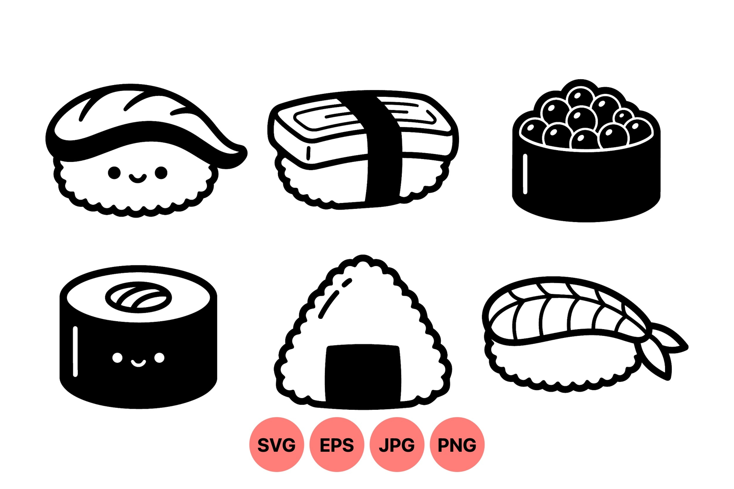 Kawaii Cute Sushi SVG Vector Clipart Illustrations