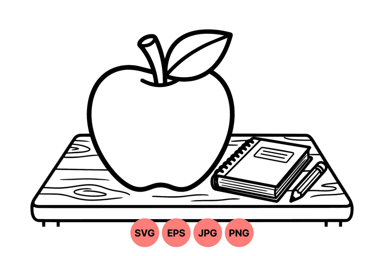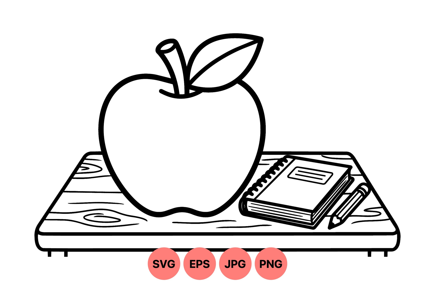 Line Art Apple With Notebook And Pencil Illustration example image 1