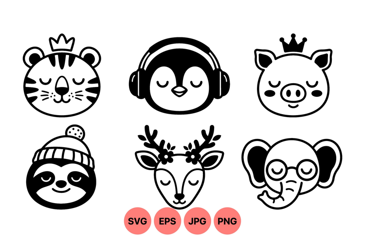 Hand Drawn Cute Animal Faces SVG Graphics example image 1