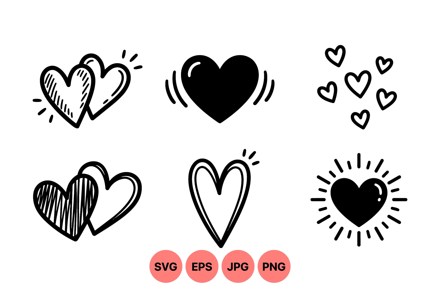 A of black and white hand drawn hearts in different shapes with doodle accents and highlights suitable for love themed projects and creative design work