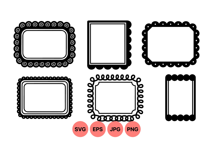 Hand Drawn Frame Digital Scrapbook Element Classic Frame Design Scalloped Edge Frame Decorative Border Art Vector Outline Design Doodle Style Clipart Black Line Frame Ornate Rectangle Border Creative Vector Border
