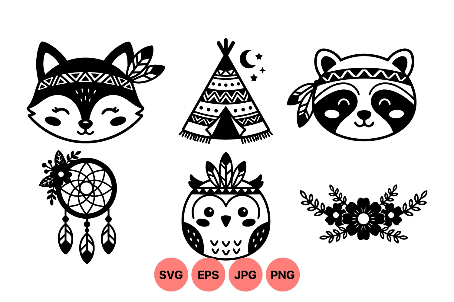 Digital Cut Files Teepee Svg Design Dreamcatcher Graphics Raccoon Face Svg Boho Nursery Decor Cute Fox Illustration Tribal Animal Clipart Boho Woodland Animals Owl Vector Art Floral Tribal Clipart