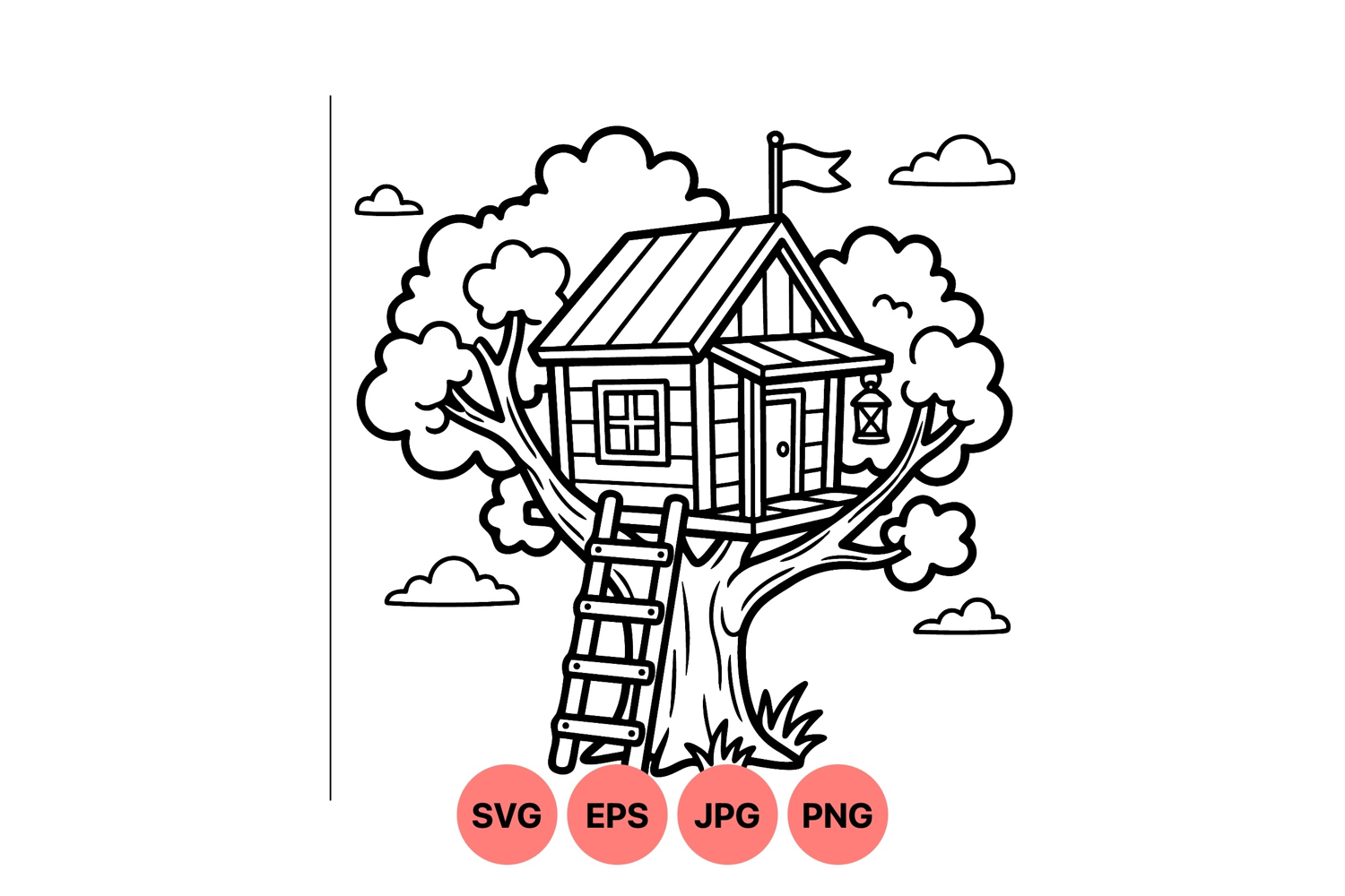 Similar Design Products to Whimsical Treehouse Line Art Svg Illustration