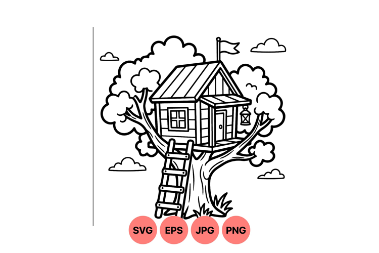 Whimsical Treehouse Line Art Svg Illustration example image 1