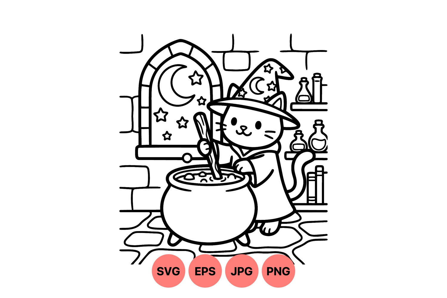 Hand Drawn Witch Cat SVG Coloring Illustration