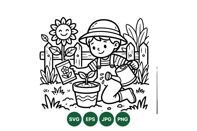 Hand Drawn Kid Gardening Scene SVG Design example image 1