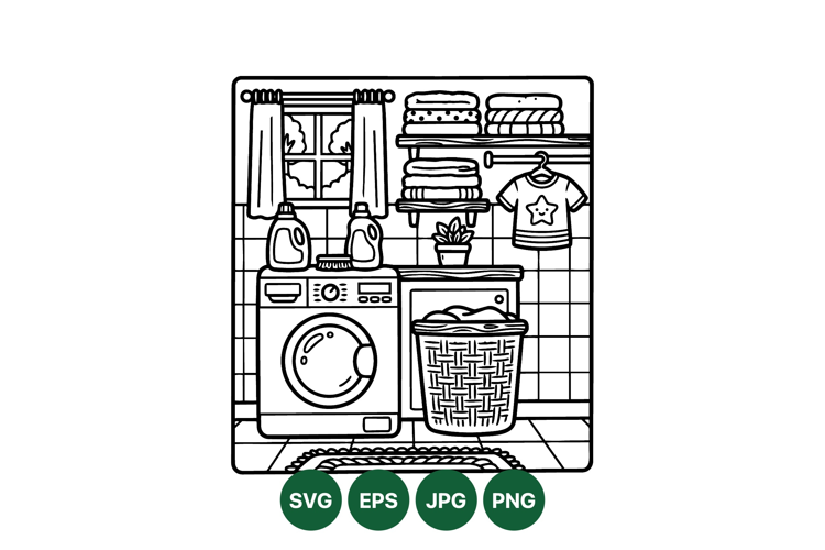Black And White Laundry Room Line Art Illustration