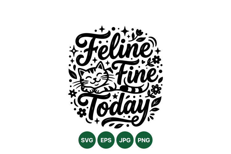 Feline Fine Today Cute Cat Typography Illustration