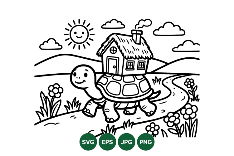 Children Coloring Page Animal Svg Clipart Cute Cartoon Drawing Printable Coloring Sheet Nature Themed Svg Kids Activity Design Playful Kids Illustration Blackline Vector Art Turtle Coloring Svg House On Turtle