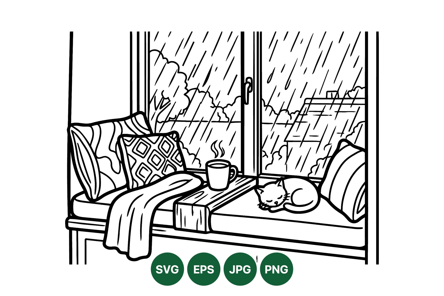 Similar Design Products to Cozy Window Seat Line Art Illustration Clipart