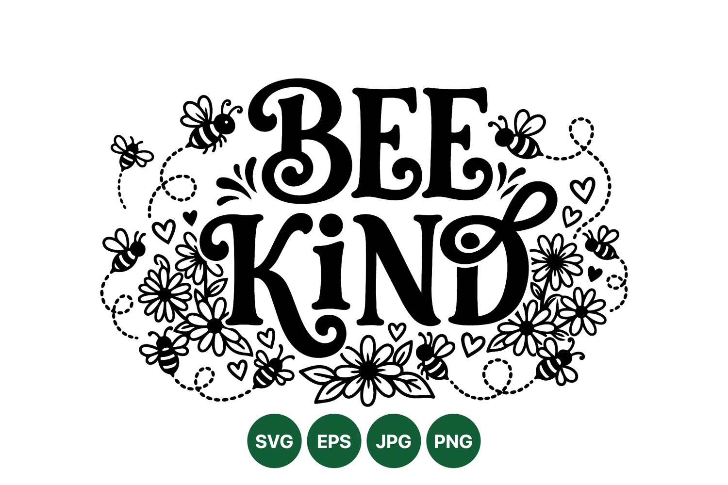 Hand Drawn Bee Kind Floral SVG Illustration Art
