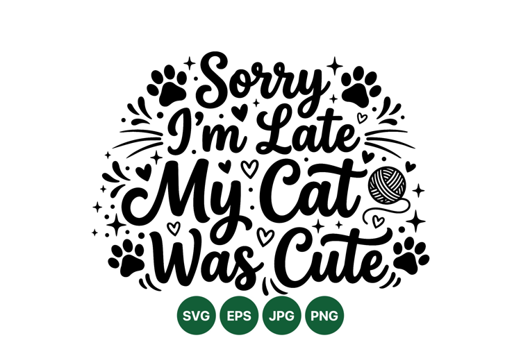 Funny Sorry I Am Late Cat SVG Design example image 1