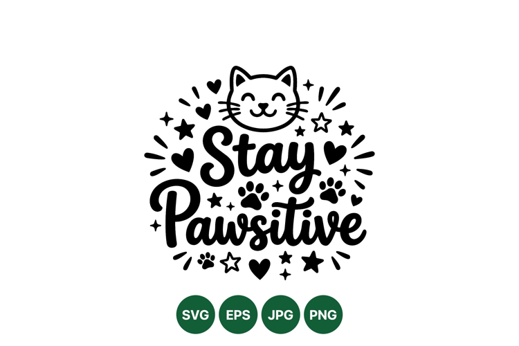 Cute Stay Pawsitive Cat SVG Clipart Design For Crafts