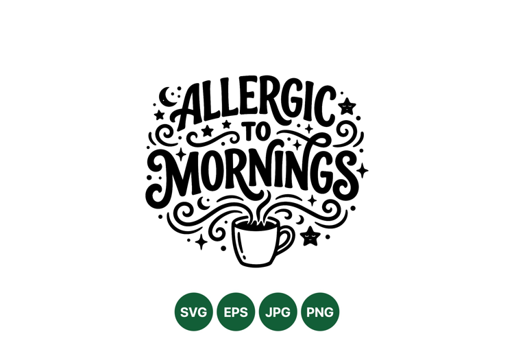 Funny Allergic To Mornings Coffee Typography Design example image 1