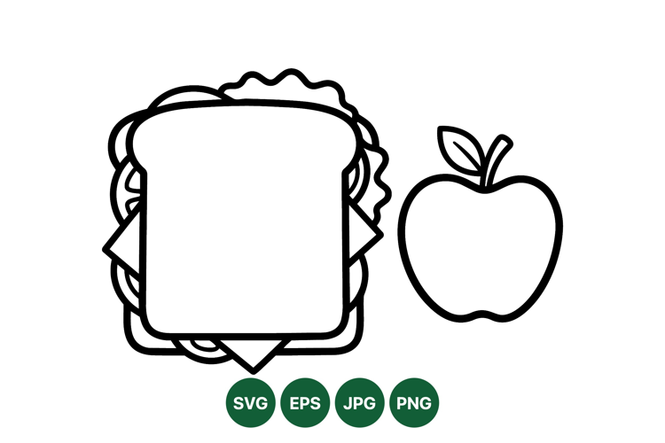 Similar Design Products to Black Line Art Sandwich And Apple Illustration