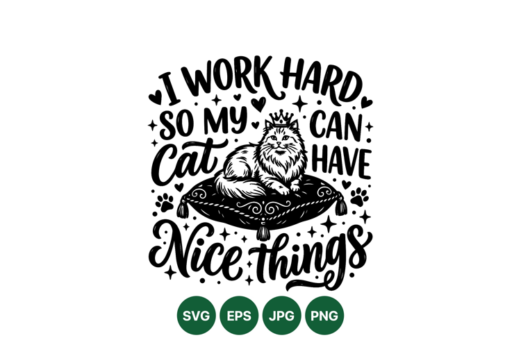 Cute Animal Clipart Work Hard Quote Funny Cat Design Cute Cat Illustration Pet Lover Design Cat Pillow Graphic Relaxed Cat Drawing Motivational Pet Art Cat Lover Typography Cat Crown Artwork