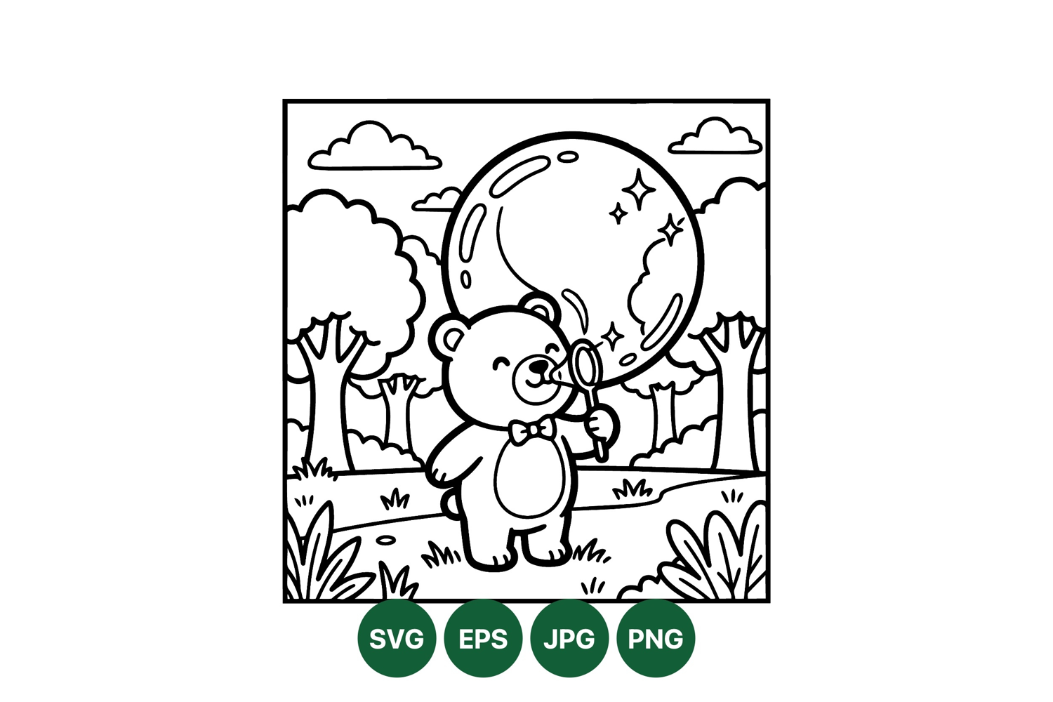 Cute Bear Blowing Bubble Black Line Art Design example image 1