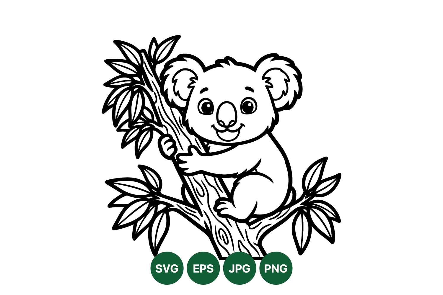 Black And White Drawing Koala Bear Graphic Vector Animal Clipart Line Art Animal Cute Koala Illustration Digital Animal Illustration Children Animal Design Koala In Tree Art Wildlife Clipart Vector Cartoon Koala Image