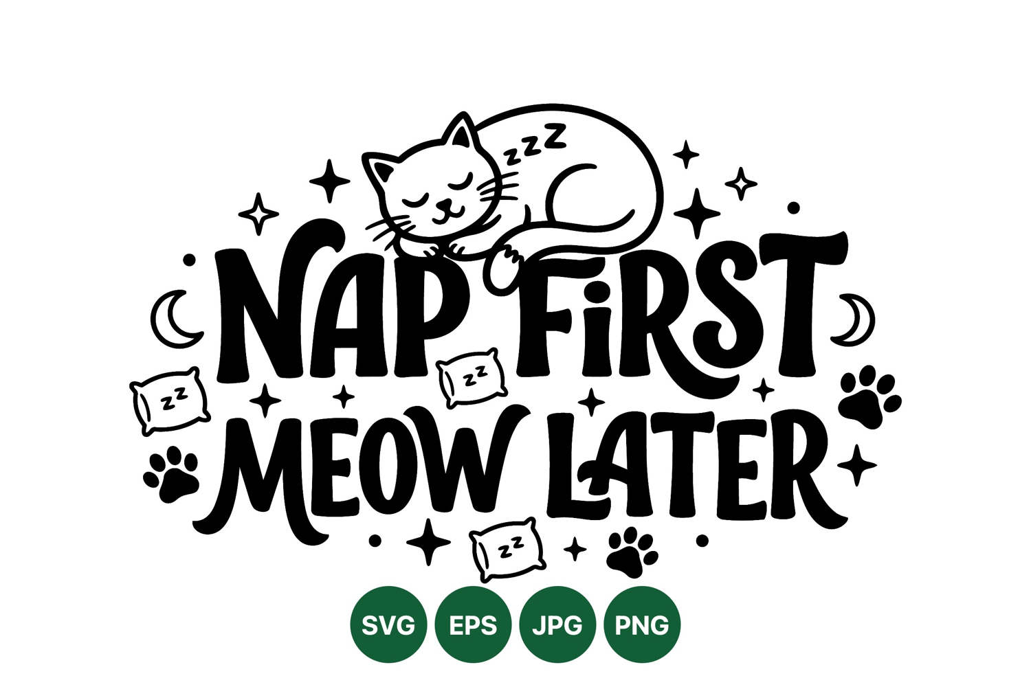 Funny Cat Nap First Meow SVG Design for Crafts example image 1