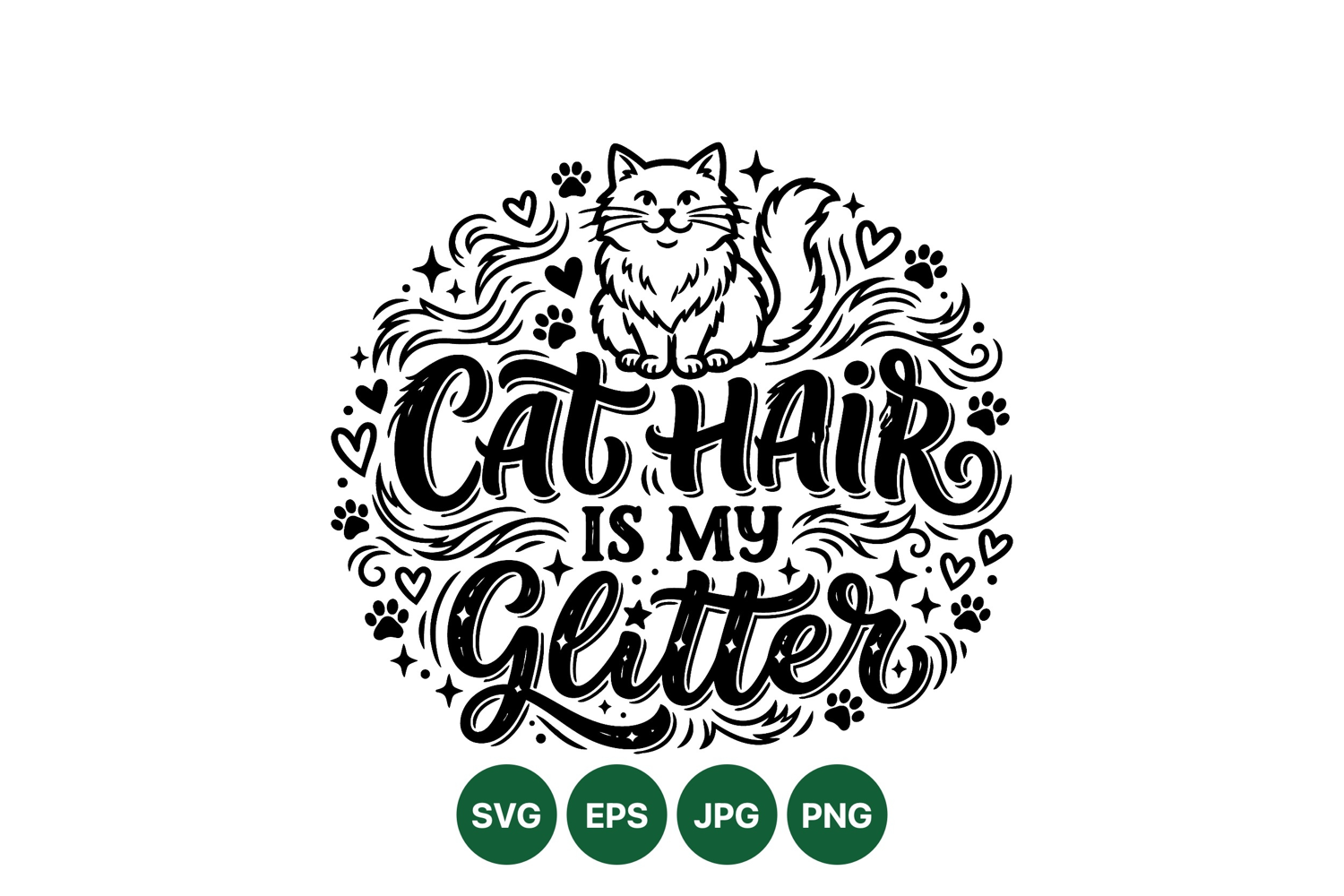 Funny Cat Hair Glitter SVG Clipart Design