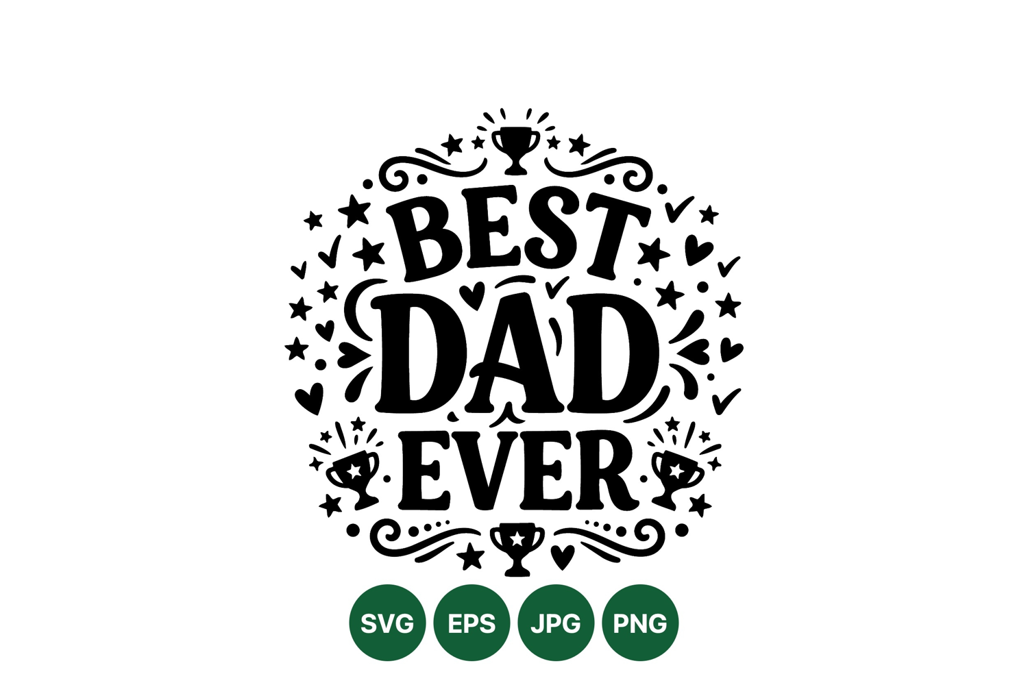 Father Day Design Typography Art Svg Best Dad Illustration Family Celebration Artwork Heart Star Decoration Award Trophy Clipart Father Appreciation Art Dad Love Graphic Parent Hero Design Dad Phrase Illustration