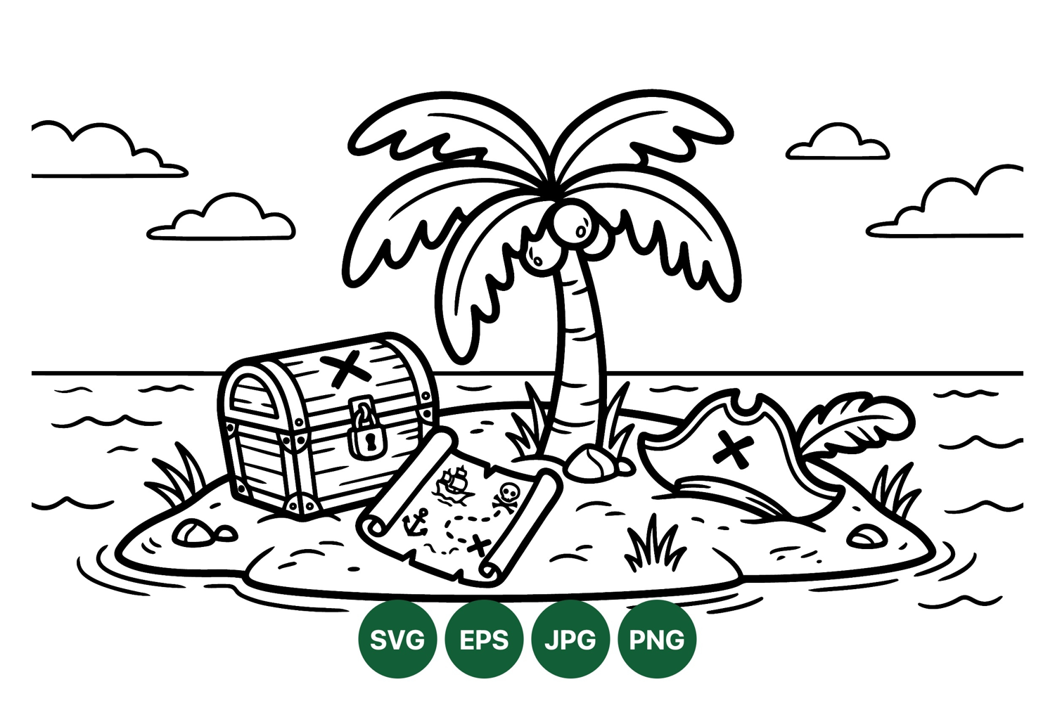 Outline Pirate Island Treasure Scene Vector Illustration example image 1
