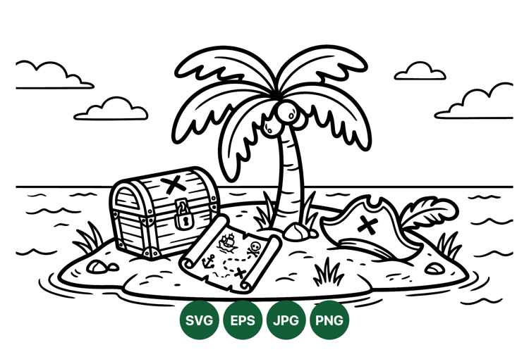 Similar Design Products to Outline Pirate Island Treasure Scene Vector Illustration