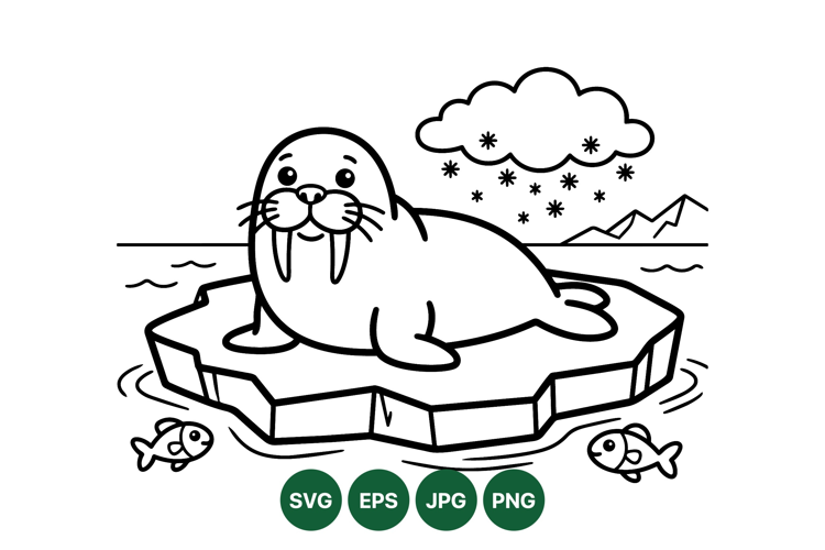 Kids Coloring Page Cute Animal Clipart Black And White Drawing Marine Life Illustration Arctic Animal Graphic Ocean Wildlife Illustration Walrus Vector Design Winter Nature Image Polar Wildlife Art Ice Floe Artwork