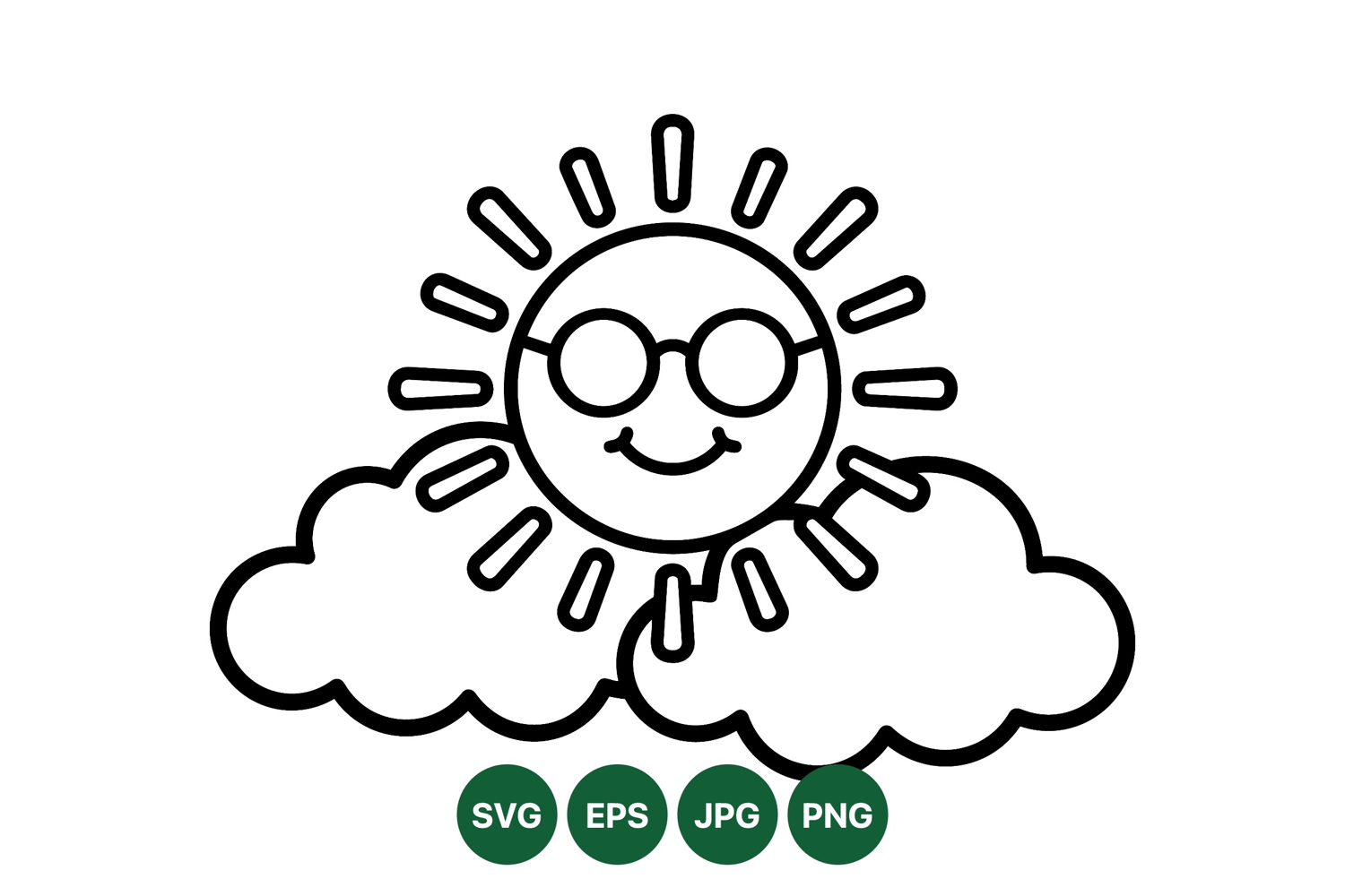 Summer Sunshine Svg Smiling Sun Clipart Vector Sun Illustration Happy Weather Graphic Cartoon Sun Design Sun With Glasses Cloud Outline Art Cute Sun Drawing Funny Sun Icon Sunshine Cloud Design