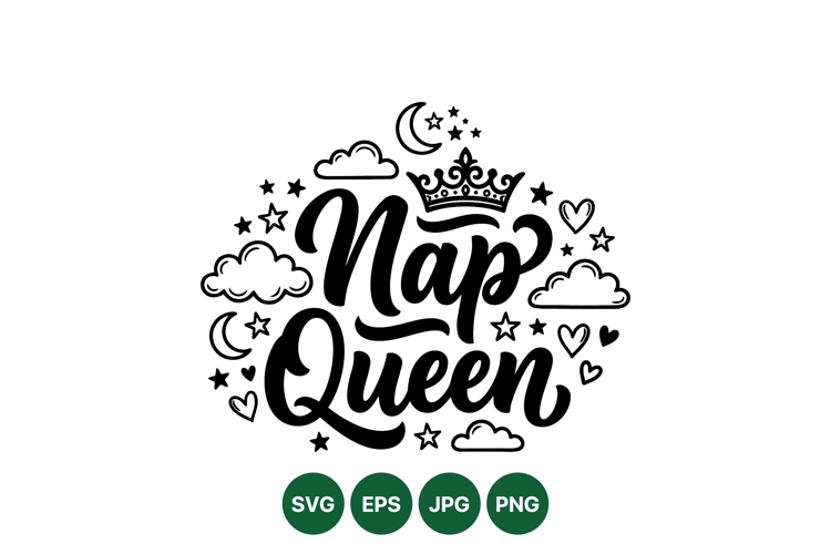 Svg Cut File Funny Quote Design Crown And Stars Hand Lettered Typography Vector Lettering Design Nap Queen Phrase Digital Print Graphics Relaxation Theme Art Sleepy Time Decor Cute Script Clipart