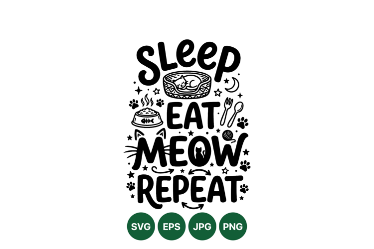 Funny Cat Sleep Eat Meow Repeat SVG Design