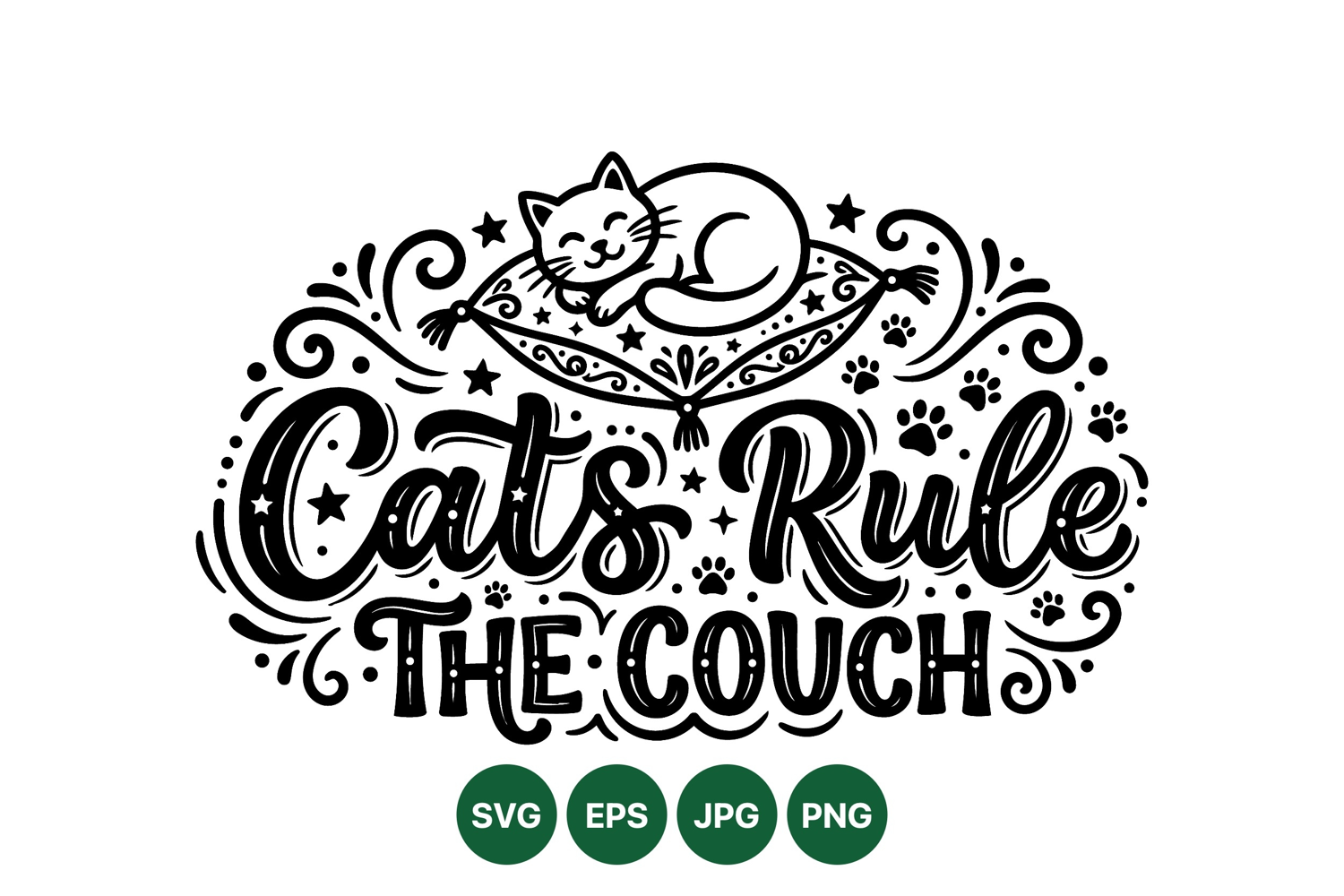 Funny Cats Rule The Couch SVG Clipart Design example image 1