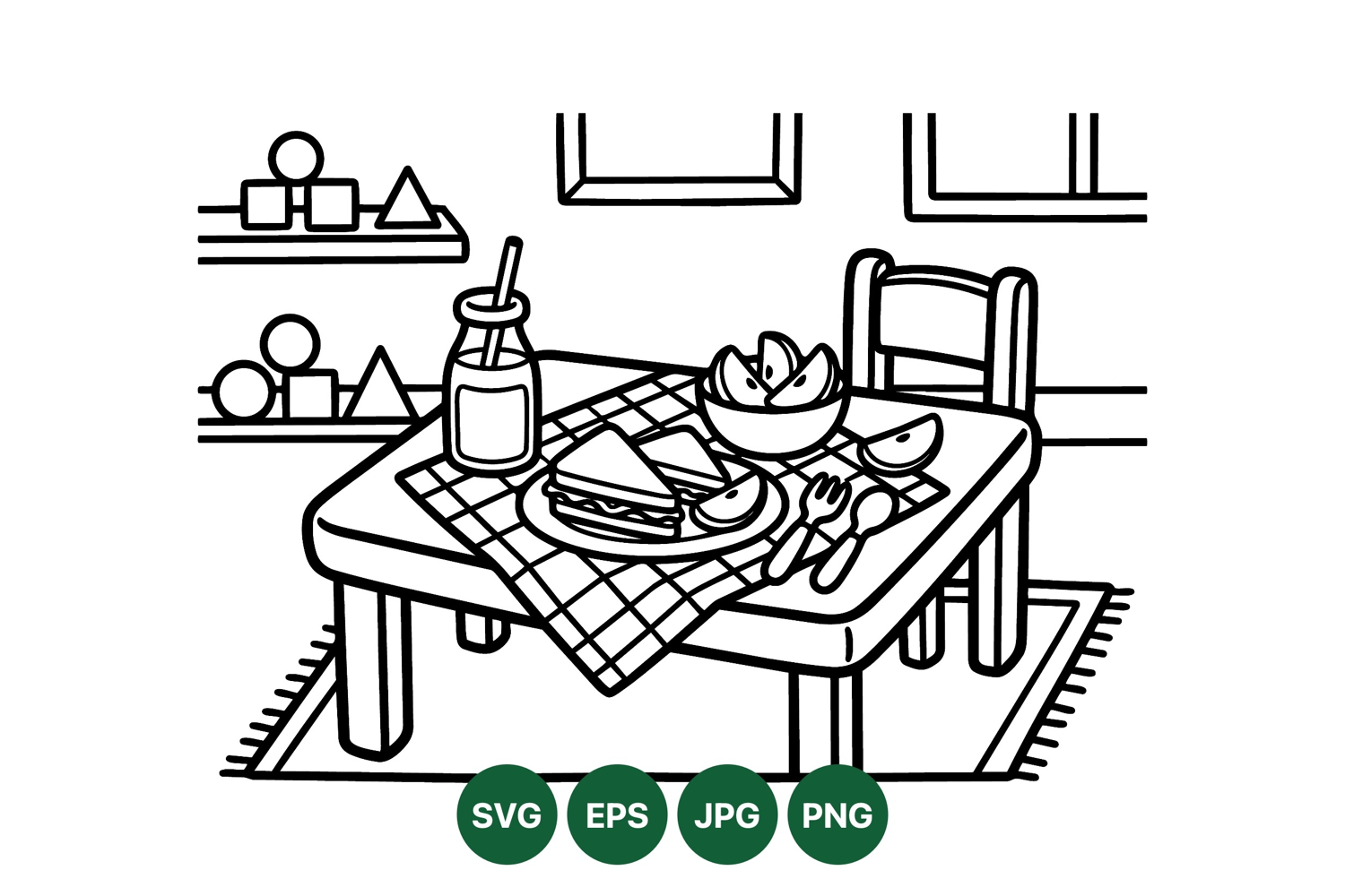 Line Art Kids Dining Room Illustration Clipart example image 1
